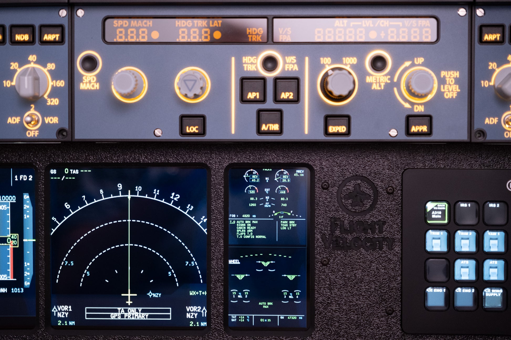 This panel features a built-in LCD display divided into three compartments, replicating the Primary Flight Display (PFD), Multi-Function Display (MFD), and essential instrument gauges — delivering a true-to-life Airbus flying experience.